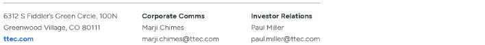 “TTEC’s board of directors’ decision to reduce the dividend reflects a prudent shift to prioritize our capital deployment towards continued investments in sustainable growth initiatives and debt reduction associated with strategic acquisitions. As revised, the dividend is in line with our stock price and the dividend yield typical for our industry and the broader market. I am confident we are well positioned to emerge stronger as we exit 2024.”